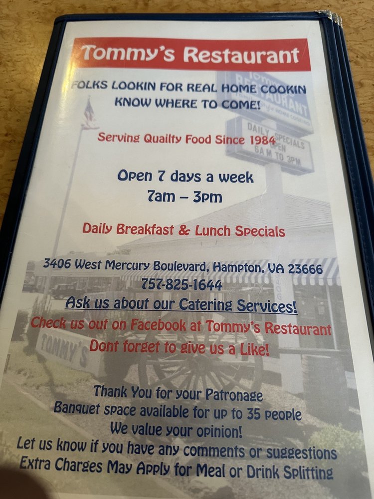 Welcome to Tommy's Restaurant, a beloved breakfast and brunch spot located at 3406 W Mercury Blvd in Hampton, VA. This cozy restaurant offers a wide range of options for every type of diner, from vegetarian-friendly dishes to hearty breakfast sandwiches and subs.
